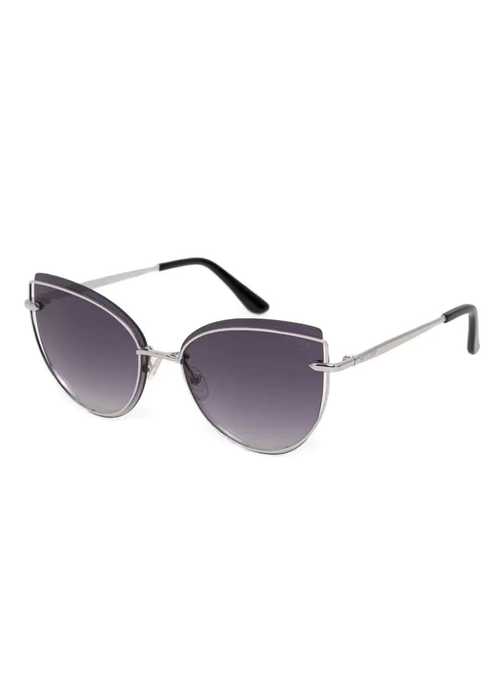 zilverkleurig cat-eye montuur metalen afwerking glazen met kleurverloop neuskussentjes smalle pootjes Deze bril wordt verkocht met een beschermhoes.
