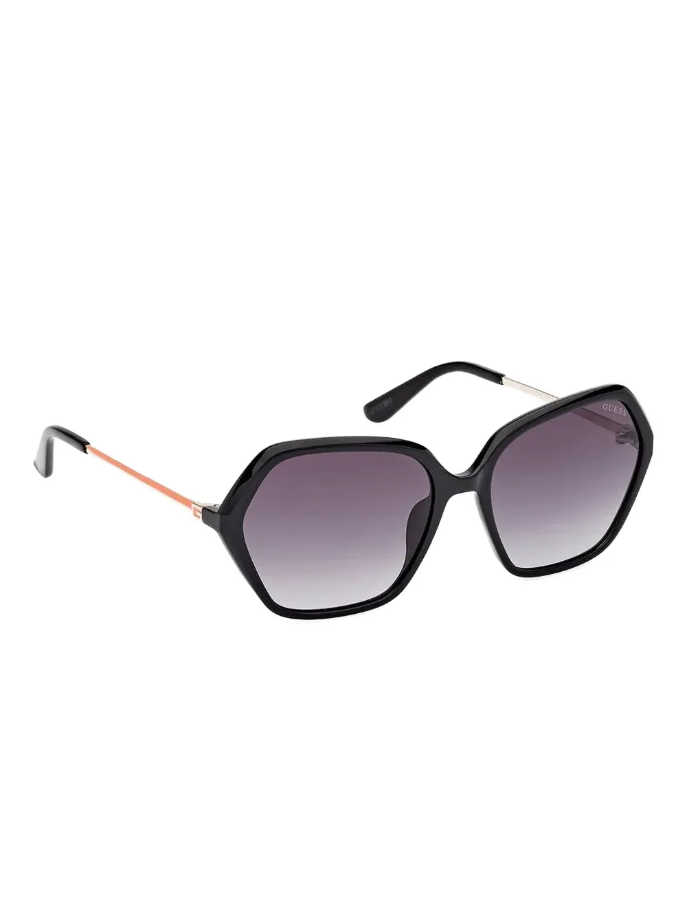 zwart geometrisch montuur glazen met kleurverloop neuskussentjes gebogen uiteinde Deze bril wordt verkocht met een beschermhoes.