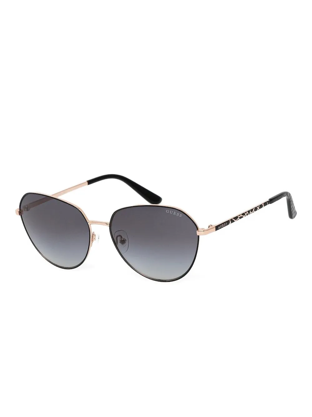 zwart glazen met kleurverloop geometrisch montuur metalen pootjes poten met patroon smal design Deze bril wordt verkocht met een beschermhoes.