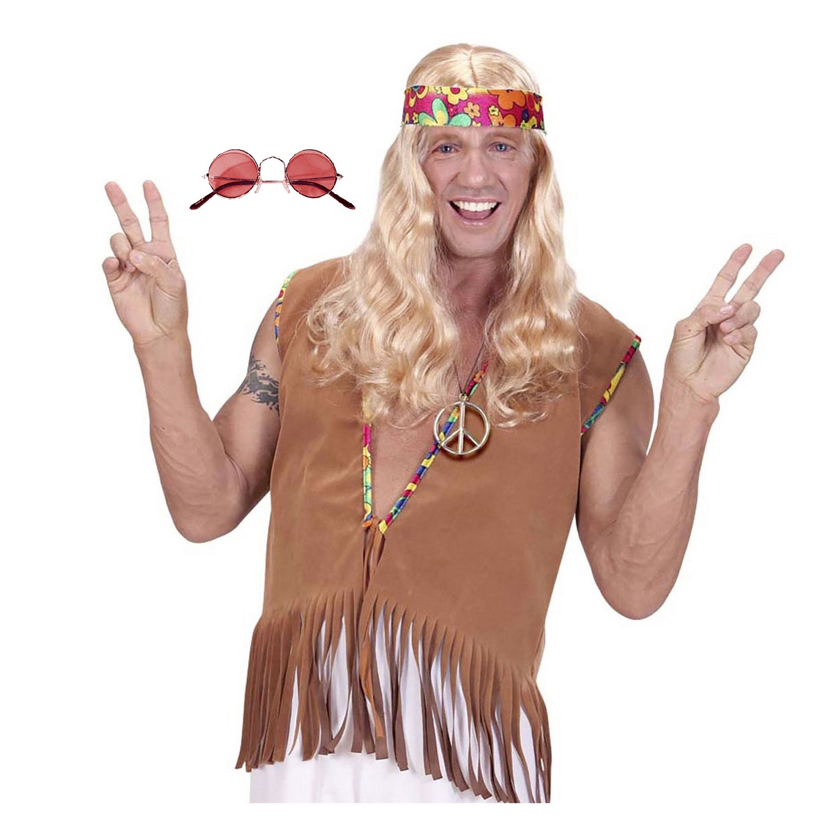 Hippie Flower Power Sixties verkleed accessoires set voor dames en heren bestaande uit een peace teken ketting in het zilver en een verkleed bril met ronde glazen in het rood. Materiaal: kunststof/metaal. Zo ben je snel helemaal in je rol. Carnaval thema verkleedkleding accessoires voor bij je outfit. Wat je nog kan toevoegen: kostuum, joint, pruik, hoed. , Dit artikel bestaat uit:, 1x Peace teken ketting – Hippie – Flower Power – Sixties sieraden, 1x Faram Party carnaval zonnebril – Hippie Flower Power Sixties – ronde glazen – rood