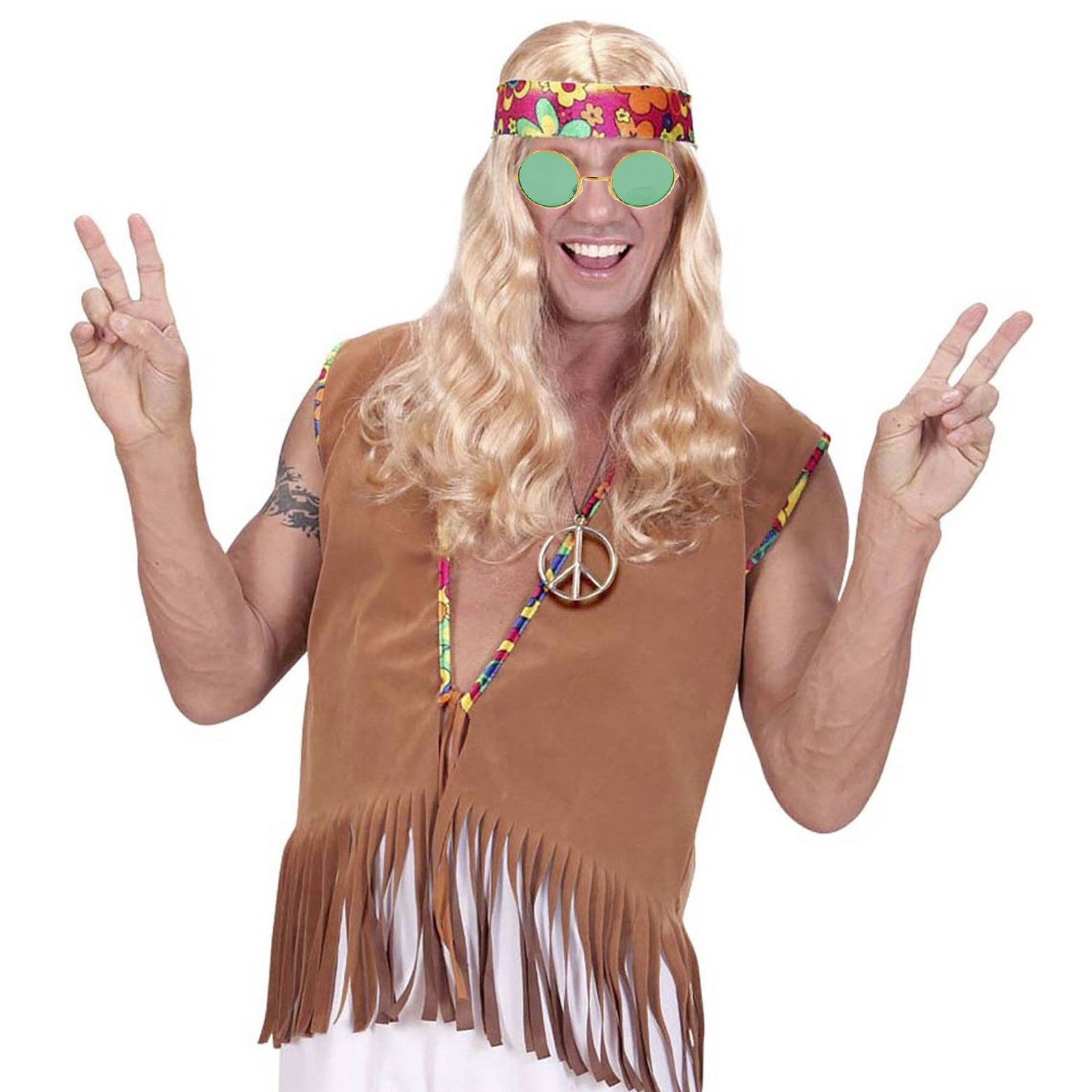 Hippie Flower Power Sixties verkleed accessoires set voor dames en heren bestaande uit een peace teken ketting in het zilver en een verkleed bril met ronde glazen in het groen. Materiaal: kunststof/metaal. Zo ben je snel helemaal in je rol. Carnaval thema verkleedkleding accessoires voor bij je outfit. Wat je nog kan toevoegen: kostuum, joint, pruik, hoed. , Dit artikel bestaat uit:, 1x Peace teken ketting – Hippie – Flower Power – Sixties sieraden, 1x Carnaval verkleedbril – ronde glazen – groen – flower power – hippie