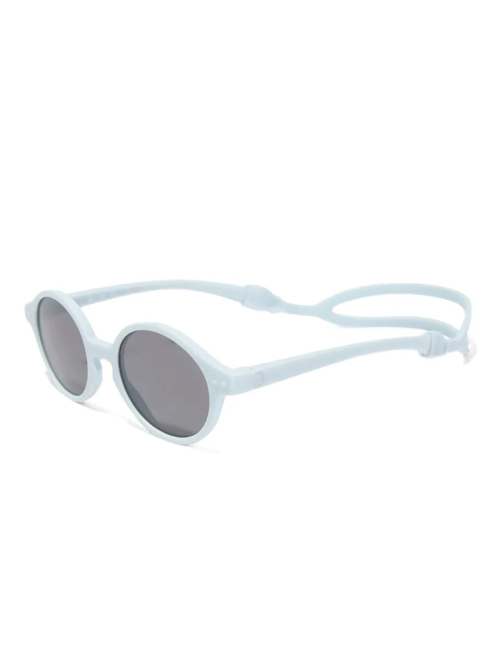 lichtblauw rond montuur polariserende glazen flexibele pootjes verstelbare band grijze vilten kast Deze bril wordt verkocht met een beschermhoes.