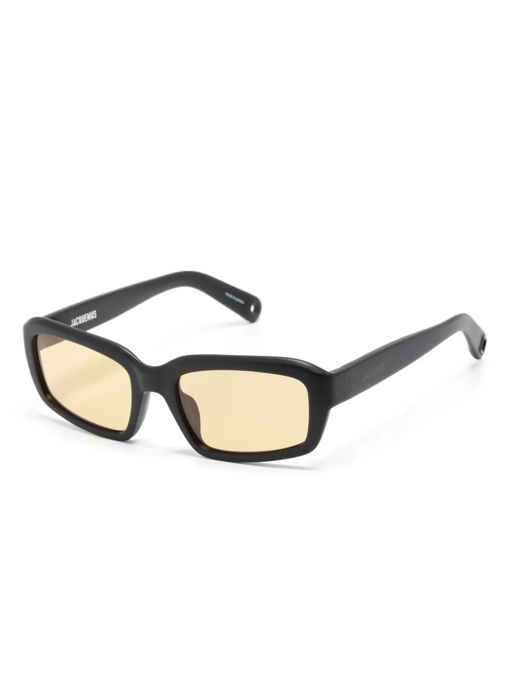 zwart gele glazen rechthoekig montuur rechte pootjes Deze bril wordt verkocht met een beschermhoes.