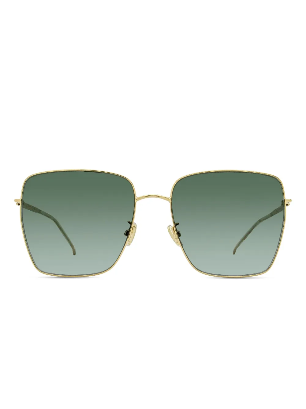 goudkleurig vierkant montuur tempels met glitterdetail verstelbare neuskussentjes metalen frame glazen met kleurverloop Deze bril wordt verkocht met een beschermhoes.