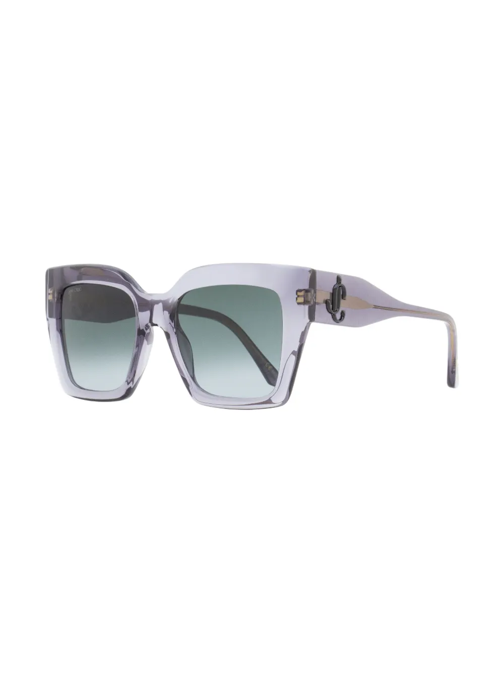 Lichtgrijs, acetaat, glazen met kleurverloop, vierkant montuur, logo, rechte pootjes en gebogen uiteinde. Deze bril wordt verkocht met een beschermhoes..
