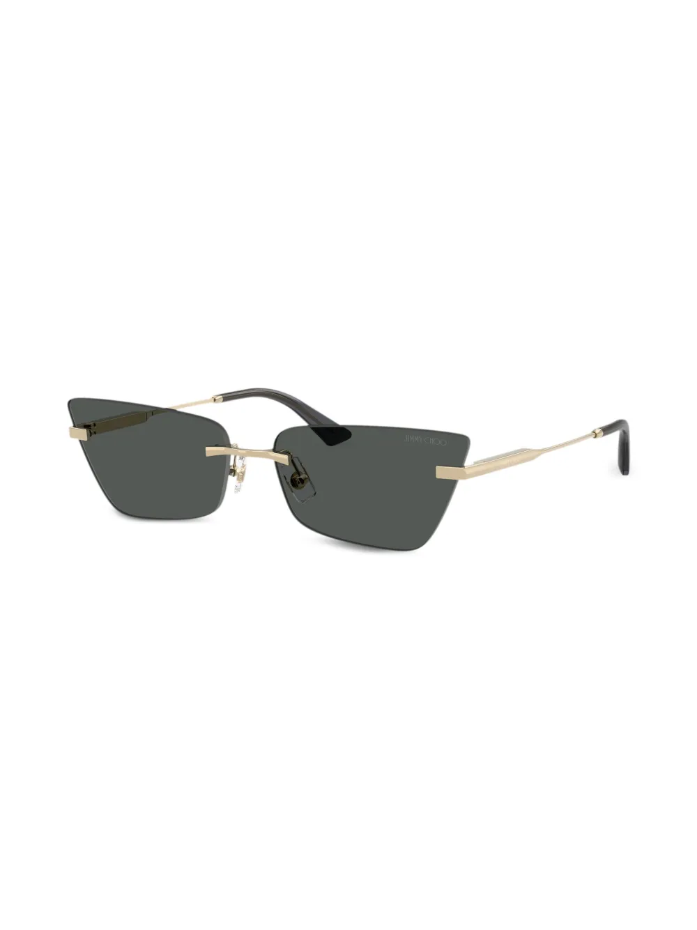 goudkleurig metaal frameloos design grijze glazen rechte pootjes gebogen uiteinden Deze bril wordt verkocht met een beschermhoes.