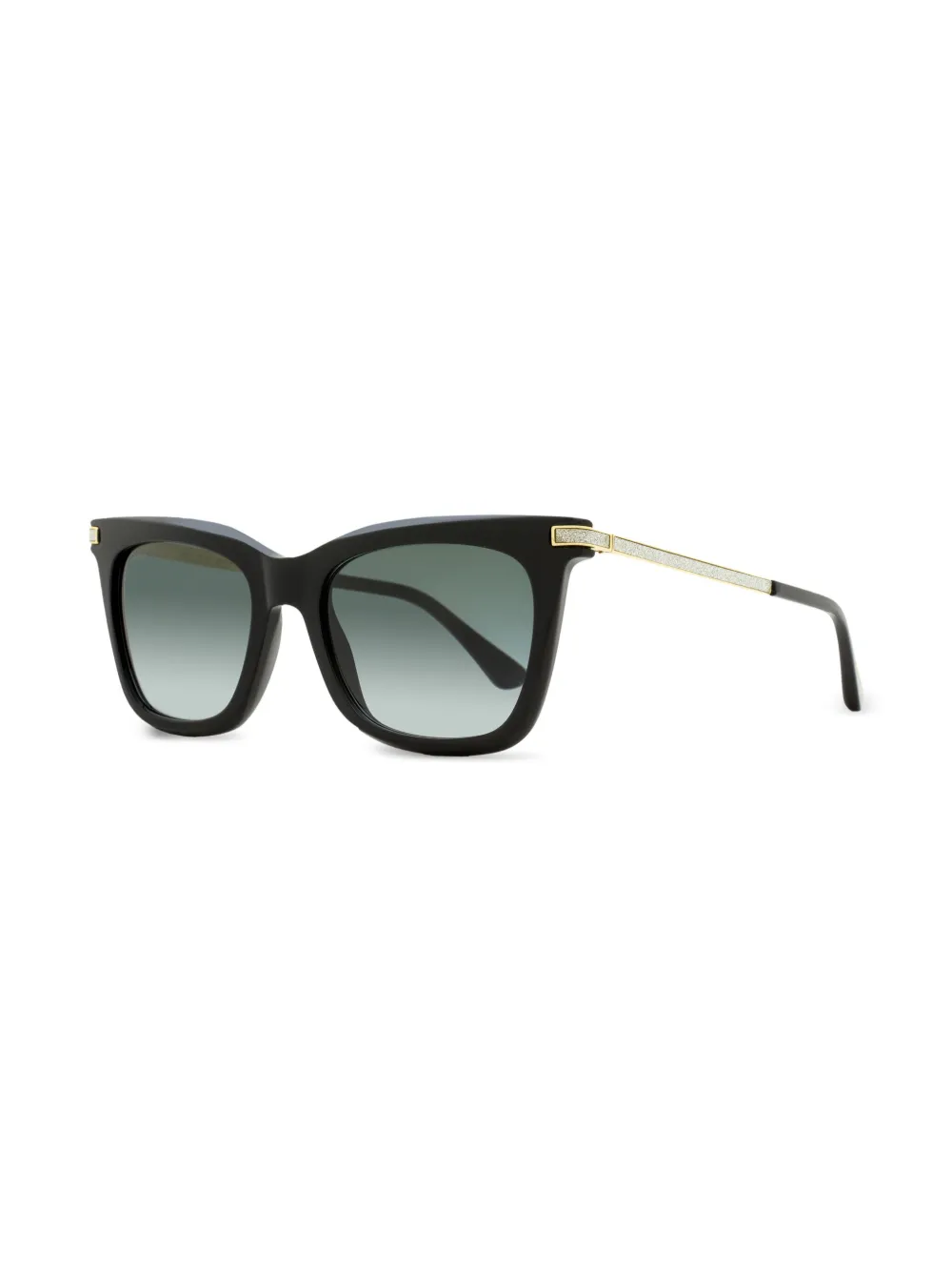 zwart acetaat metaal rechthoekig montuur glitterdetail gebogen uiteinden UV-bescherming Deze bril wordt verkocht met een beschermhoes.