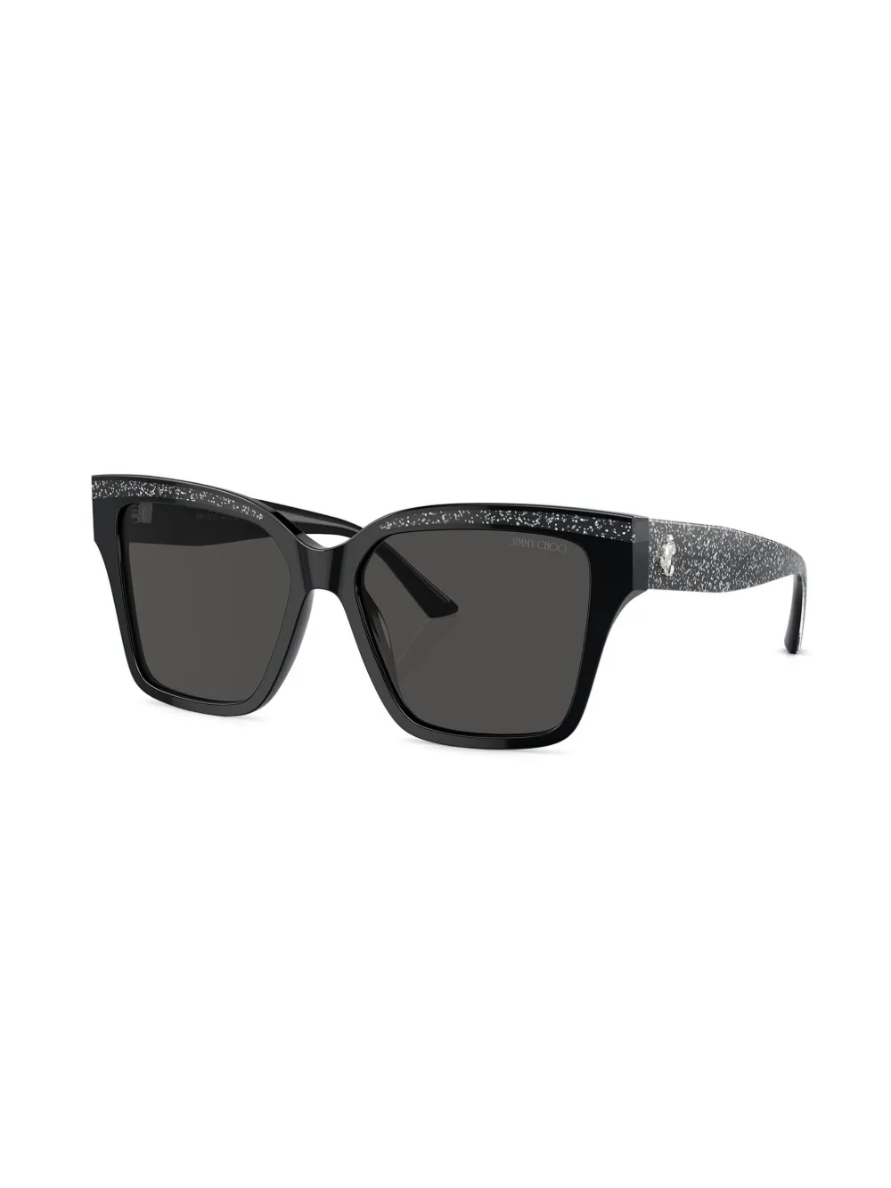 zwart acetaat vierkant montuur grijze glazen gebogen uiteinden logo bedrukt pootje Deze bril wordt verkocht met een beschermhoes.