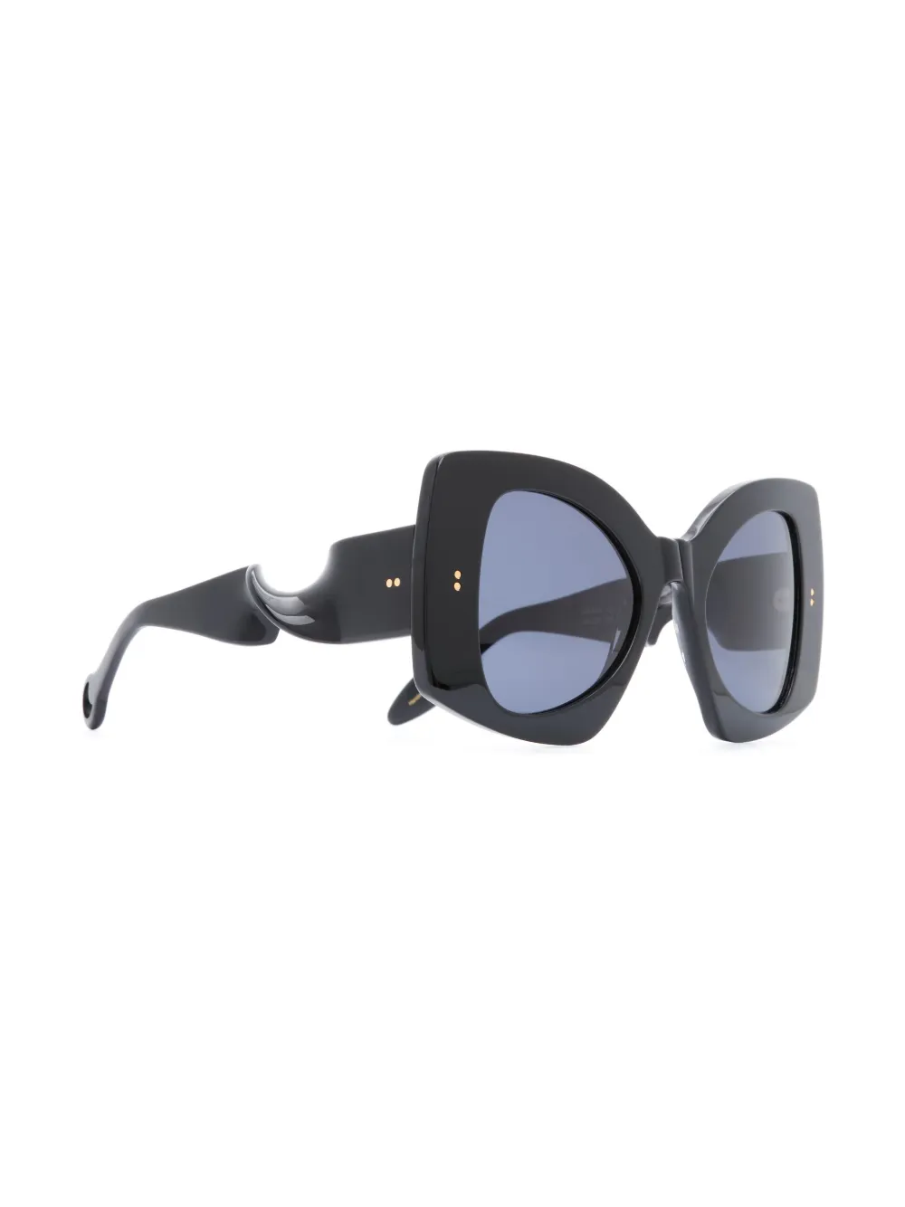 zwart acetaat oversized montuur blauwe glazen acetaat gedraaide details gewelfde pootjes gebogen uiteinden Deze bril wordt verkocht met een beschermhoes.