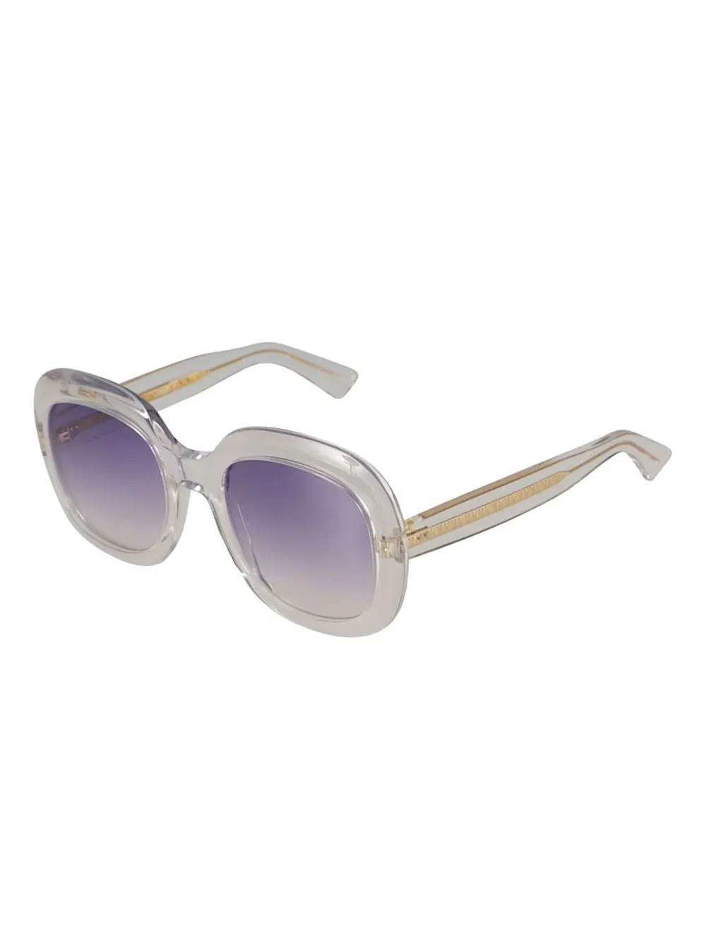lichtgrijs rond montuur glazen met kleurverloop goudkleurige details smalle pootjes Deze bril wordt verkocht met een beschermhoes.