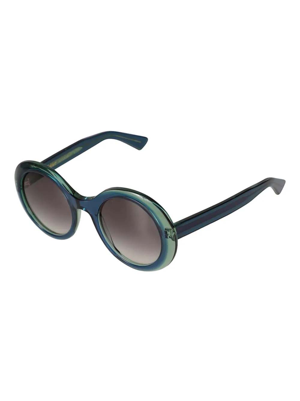 groenblauw rond montuur glazen met kleurverloop acetaat donkere groenblauwe tempels detail op de pootjes Deze bril wordt verkocht met een beschermhoes.