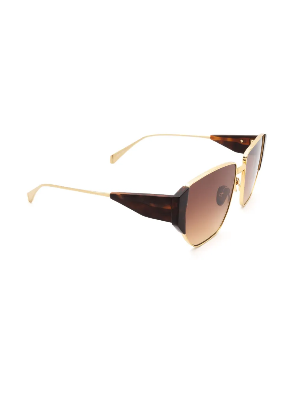 goudkleurig titanium gepolijst effect geometrisch montuur glazen met UV-bescherming neuskussentjes rechte poten met gebogen uiteinden Deze bril wordt verkocht met een beschermhoes.