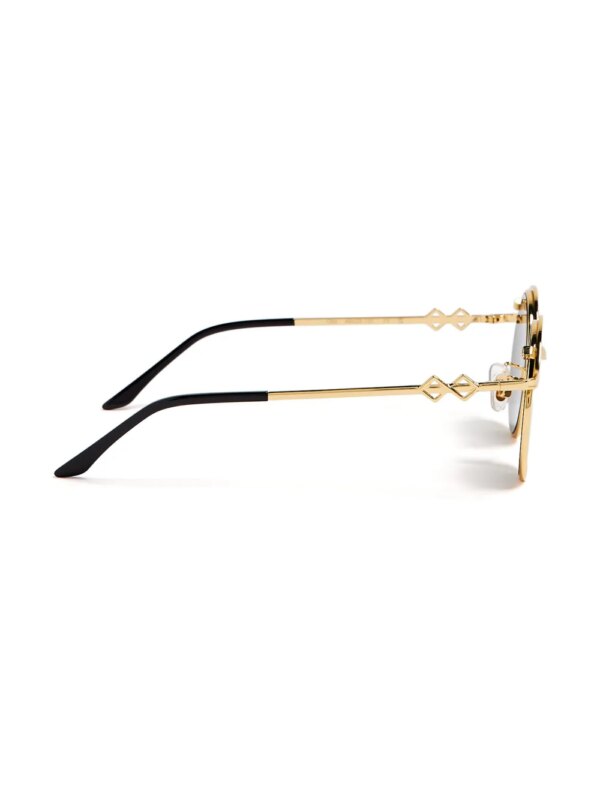goudkleurig metaal rond montuur gekleurde glazen neuskussentjes goudkleurig logoplakkaat rechte pootjes gebogen uiteinden Deze bril wordt verkocht met een beschermhoes.