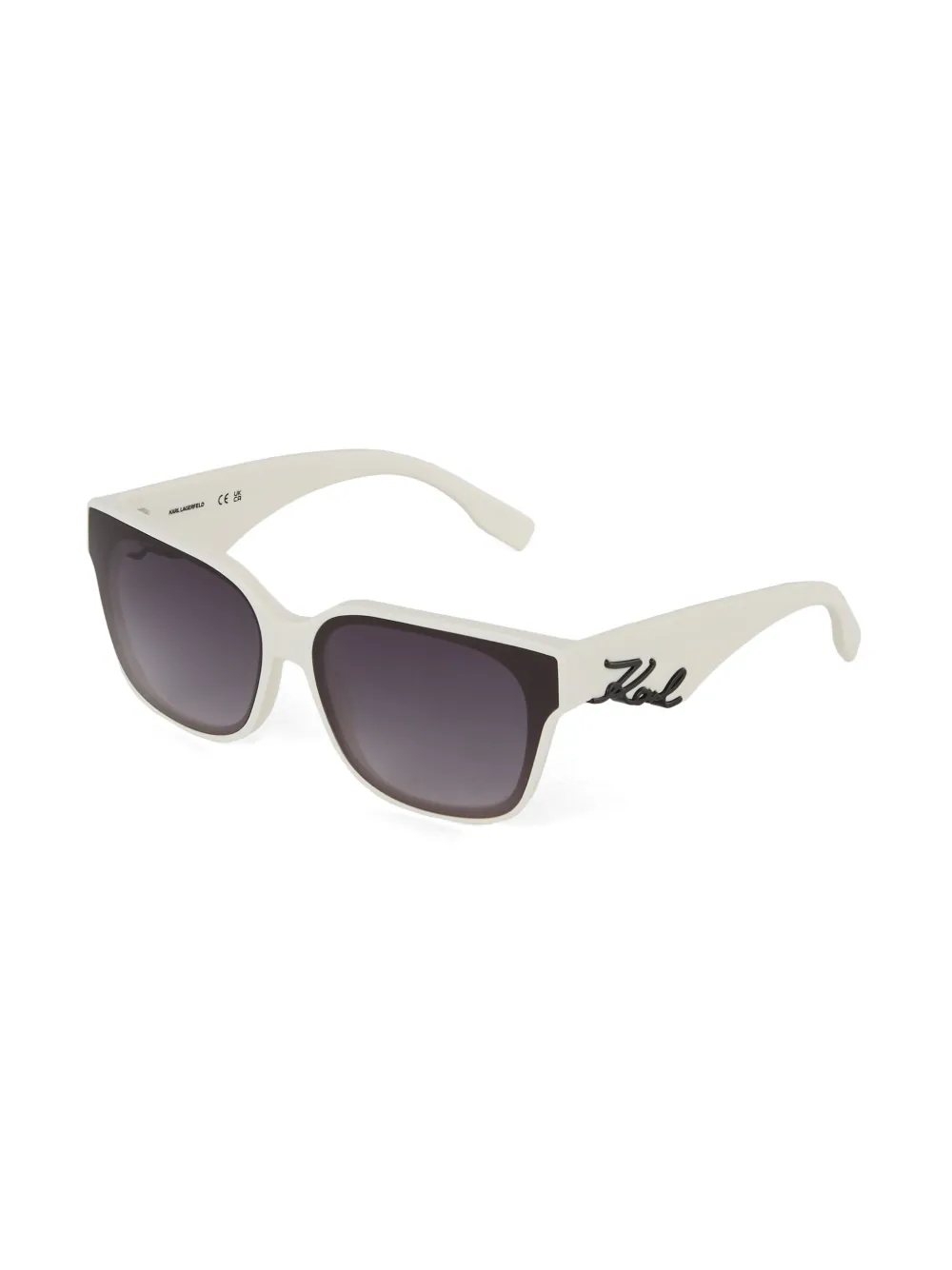 wit acetaat vierkant montuur gekleurde glazen logoplakkaat op de poot rechte pootjes gebogen uiteinden Deze bril wordt verkocht met een beschermhoes.
