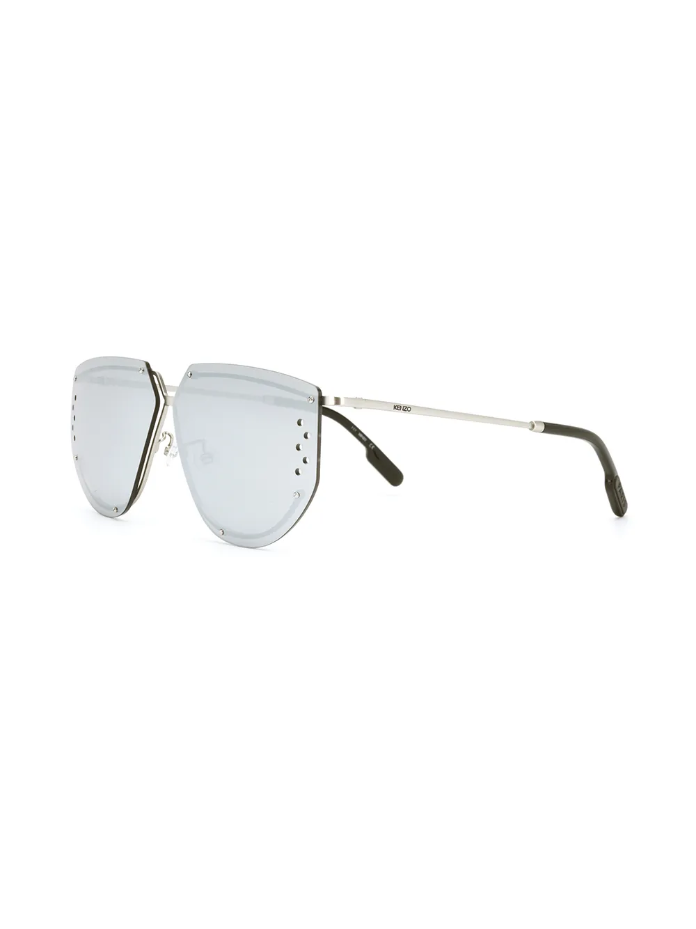 Aviator montuur, geperforeerd detail, neuskussentjes, pootje gegraveerd met logo, rechte pootjes en gebogen uiteinde. Materiaal: metaal. We weten dat je ervoor zorgt dat jouw nieuwe aankoop niets overkomt, maar voor de zekerheid zit er een beschermende hoes bij dit item.