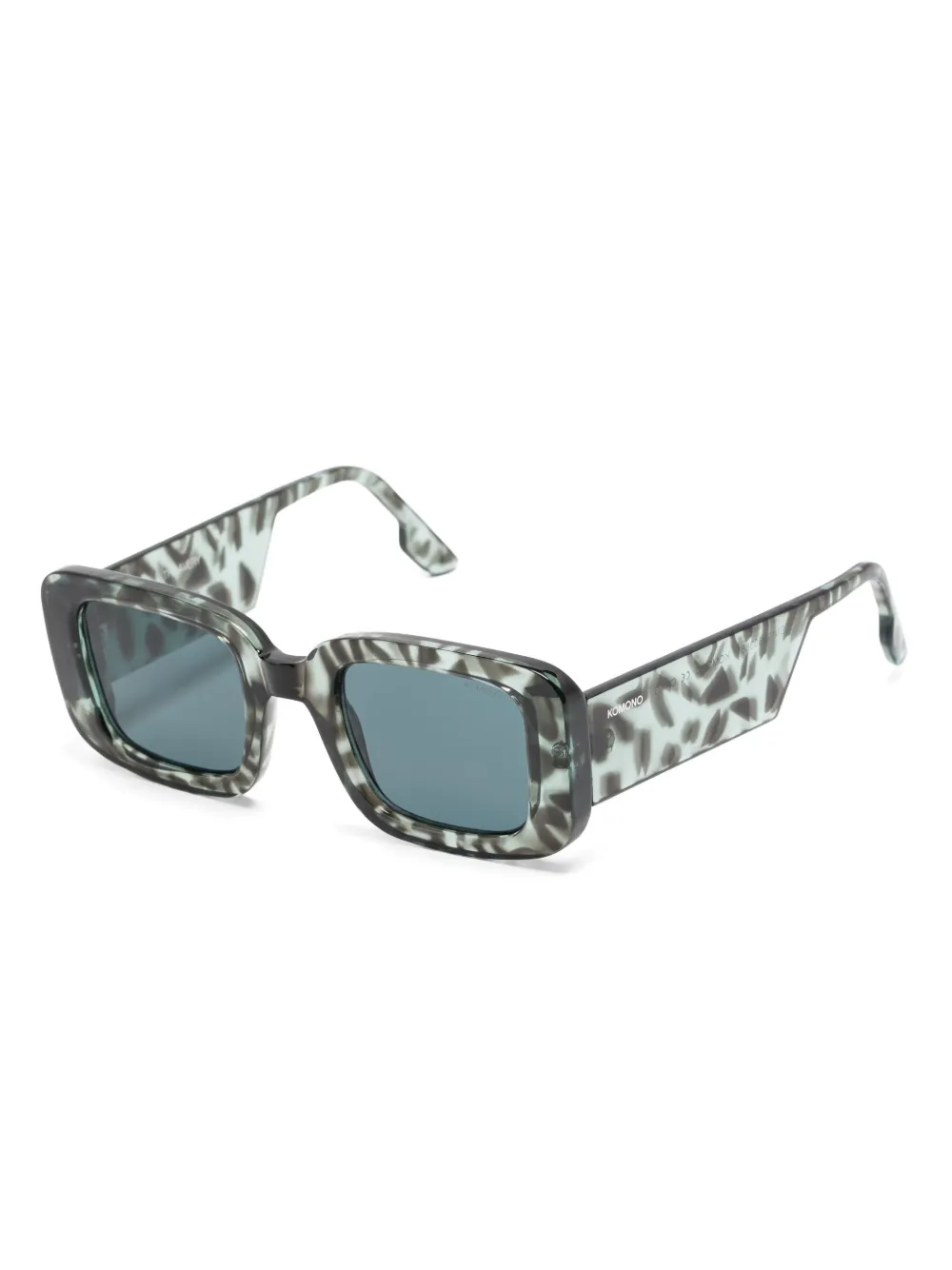groenblauw rechthoekig montuur luipaardprint grijsgetinte glazen Deze bril wordt verkocht met een beschermhoes.
