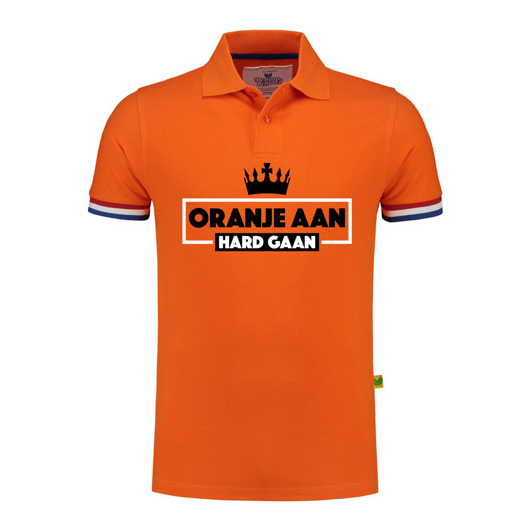 Met dit knallende oranje poloshirt laat jij op Koningsdag zien dat je er helemaal voor gaat! De speelse tekst “Oranje aan, hard gaan!” zegt genoeg: dit wordt een dag vol feest, gezelligheid en misschien een klein beetje overdrijven. Dankzij de klassieke polo-pasvorm blijf je er stijlvol uitzien, terwijl de oranje kleur je helemaal in de feeststemming brengt. Of je nu op de vrijmarkt rondstruint, een biertje drinkt op het terras of meezingt met de grootste Hollandse hits, dit shirt maakt jouw Koningsdag compleet. Oranje aan? Tijd om hard te gaan en van Koningsdag een knalfeest te maken! Materiaal: 100% katoen, 180 grams.