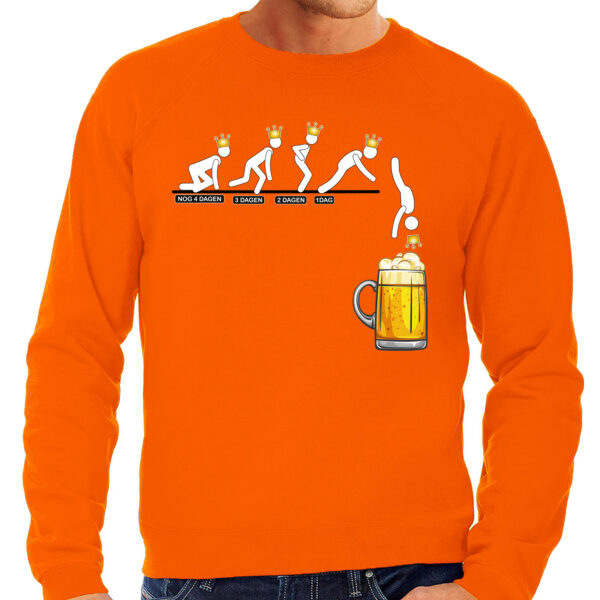 Koningsdag draait om tradities: koekhappen, polonaise lopen en natuurlijk? een koud biertje! Met dit knaloranje verkleed sweater laat je meteen zien waar jouw prioriteiten liggen. Eerst nog even meedoen met de Koningsspelen, maar zodra de sportieve plicht is voldaan, is het tijd om te duiken ? in een goed gevuld bierglas! Dit shirt is perfect voor iedereen die Koningsdag viert met een knipoog en een flinke dosis gezelligheid. Dus trek ?m aan, tel af en hef dat glas! Materiaal: 100% katoen, 145 grams kwaliteit. Merk: Bellatio Decorations.