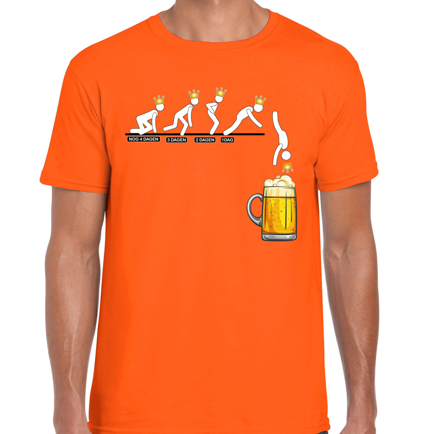 Koningsdag draait om tradities: koekhappen, polonaise lopen en natuurlijk? een koud biertje! Met dit knaloranje verkleed T-shirt laat je meteen zien waar jouw prioriteiten liggen. Eerst nog even meedoen met de Koningsspelen, maar zodra de sportieve plicht is voldaan, is het tijd om te duiken ? in een goed gevuld bierglas! Dit shirt is perfect voor iedereen die Koningsdag viert met een knipoog en een flinke dosis gezelligheid. Dus trek ?m aan, tel af en hef dat glas! Materiaal: 100% katoen, 145 grams kwaliteit. Merk: Bellatio Decorations.
