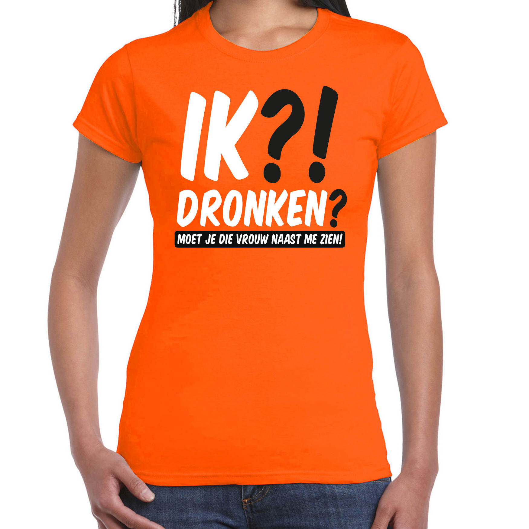 Met dit oranje Koningsdag T-shirt ben jij de grappigste op het feest! De speelse tekst “Ik?! dronken? Moet je die vrouw naast me zien!” zorgt voor een glimlach bij iedereen om je heen, terwijl je de feestdag viert met humor en stijl. Of je nu de straten onveilig maakt, danst op een festival of lekker op het terras zit, dit shirt is de perfecte manier om je Koningsdag te vieren! Trek ?m aan en zorg voor hilariteit overal waar je komt! Materiaal: 150 grams, 100% katoen.