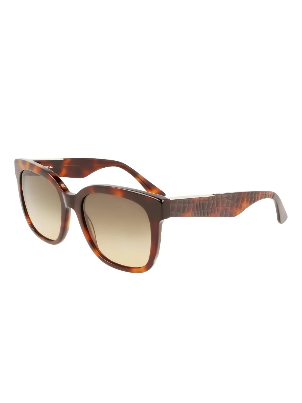 Lacoste Zonnebril met vierkant montuur en krokodillen-reliëf – Bruin