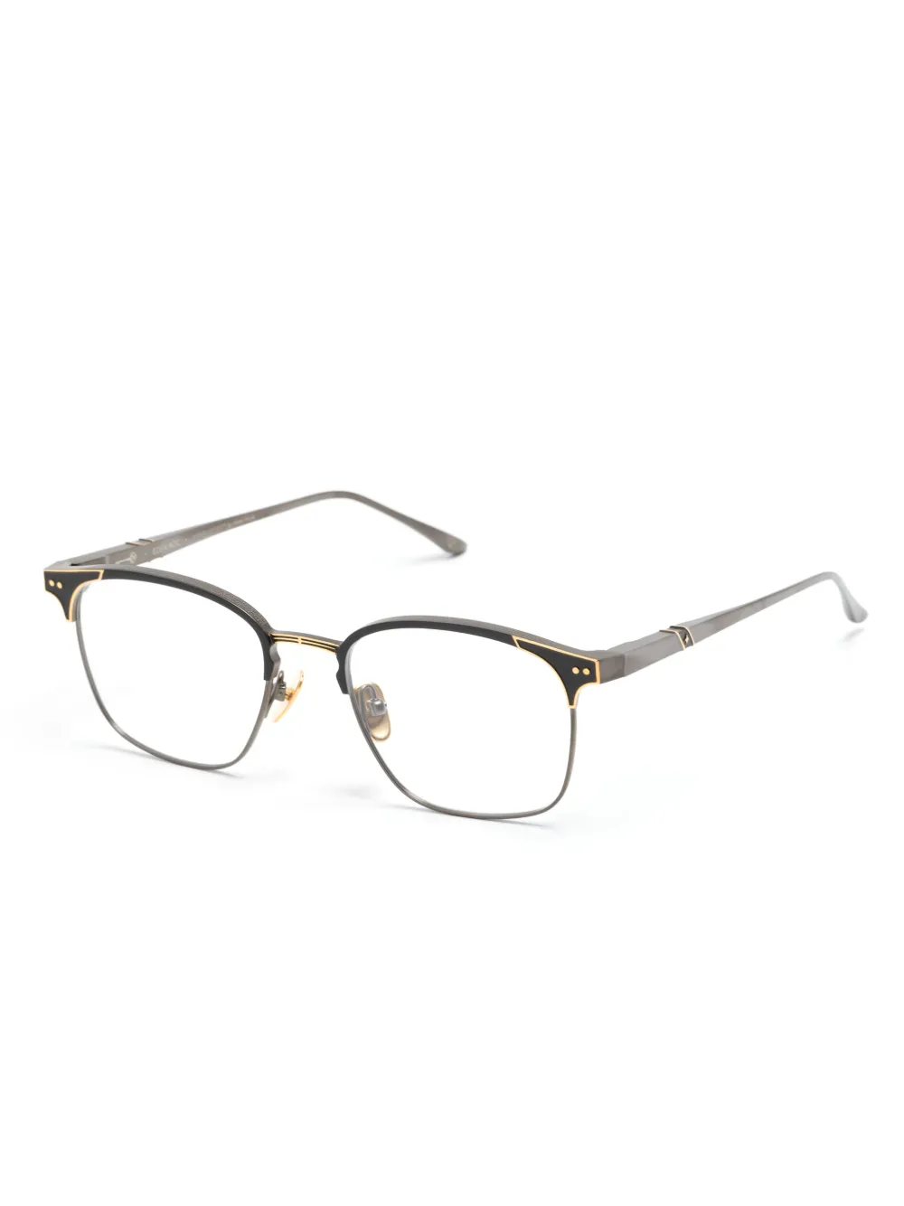zilverkleurig/zwart/goudkleurig titanium vierkant montuur doorzichtige glazen neuskussentjes gewelfde pootjes gebogen uiteinden Deze bril wordt verkocht met een beschermhoes. Alle brillen op FARFETCH worden verkocht met glazen die niet op sterkte zijn.