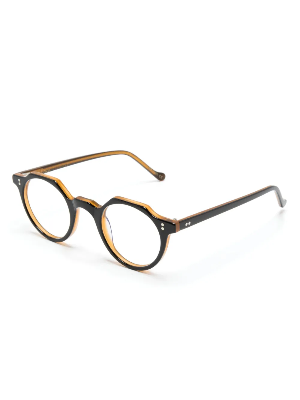zwart acetaat rond montuur doorzichtige glazen klinknageldetails rechte pootjes gewelfde uiteinden Deze bril wordt verkocht met een beschermhoes. Alle brillen op FARFETCH worden verkocht met glazen die niet op sterkte zijn.