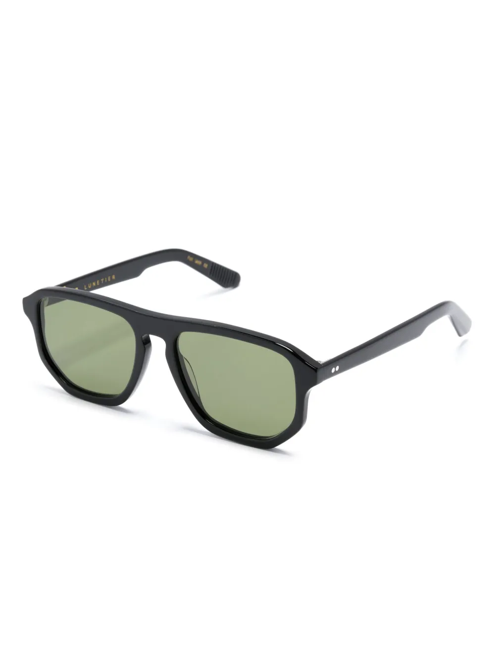 zwart acetaat rechthoekig montuur groengetinte glazen glazen met UV-bescherming stud detail rechte pootjes gebogen uiteinden