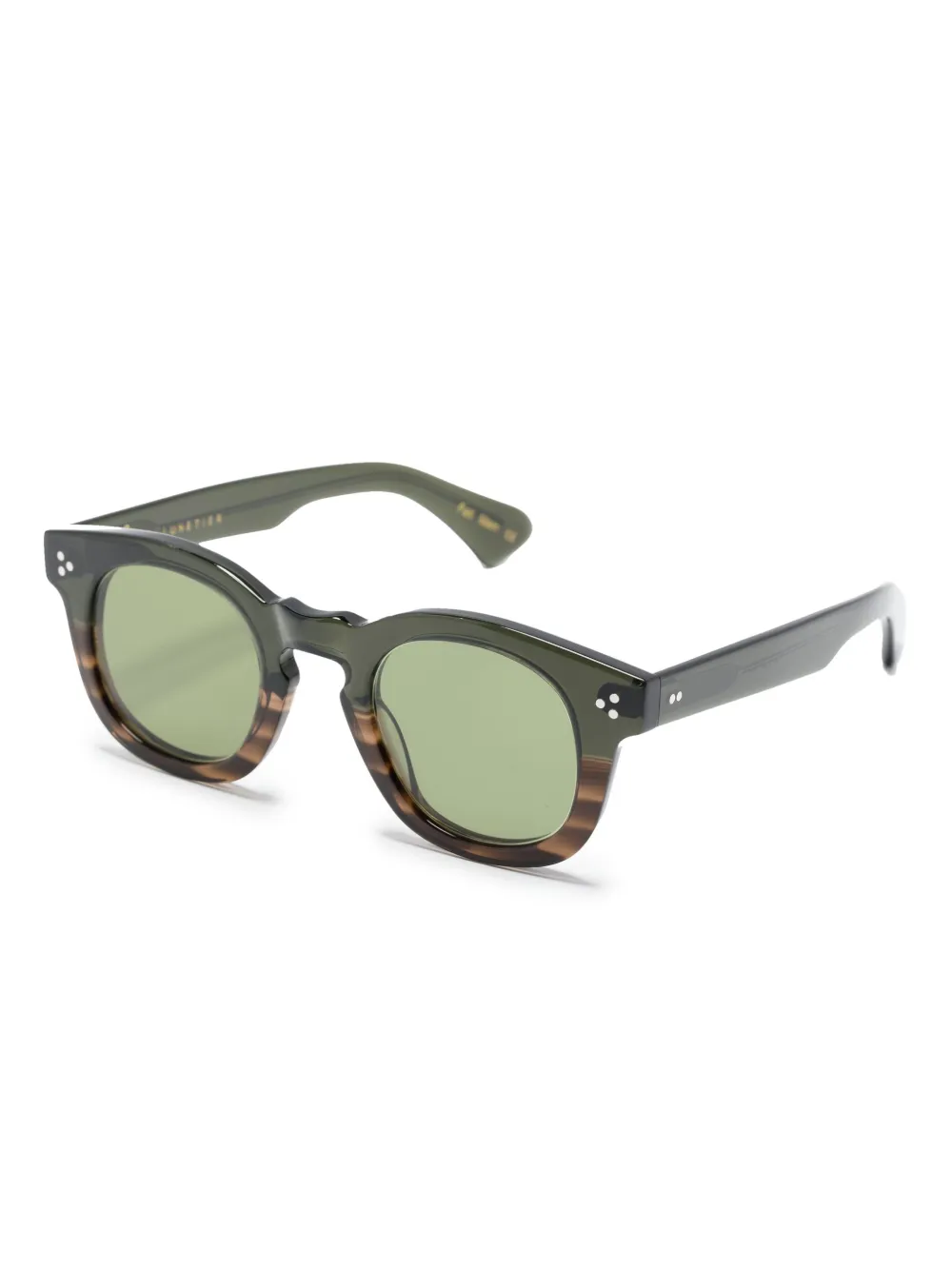 Groen, bruin, tweekleurig design, acetaat, groengetinte glazen, rond montuur, rechte pootjes en gebogen uiteinde. Alle brillen op FARFETCH worden verkocht met glazen die niet op sterkte zijn.. Deze bril wordt verkocht met een beschermhoes..