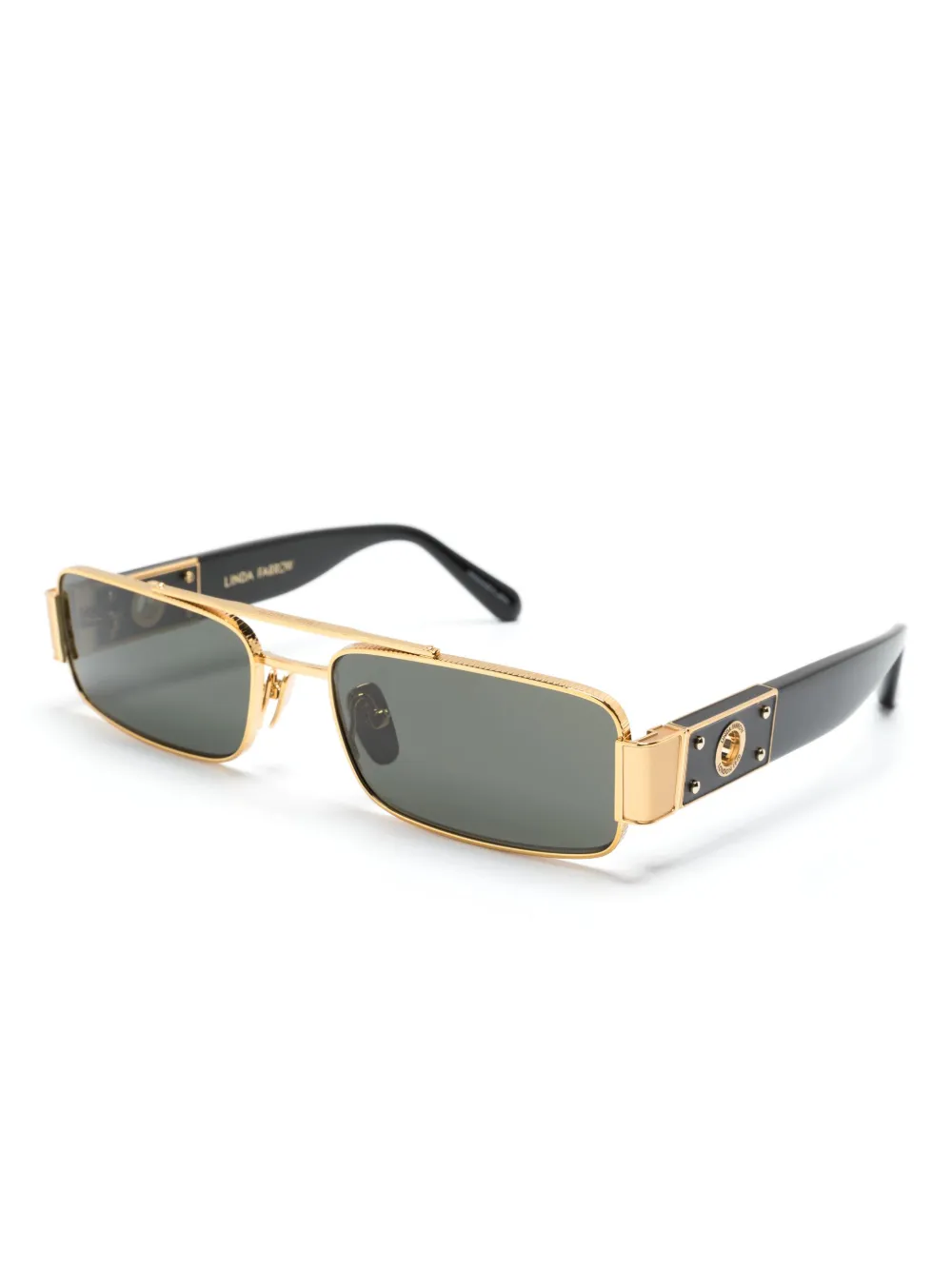 zwart/goudkleurig metaal/acetaat lens sticker rechthoekig montuur gekleurde glazen glazen met UV-bescherming neuskussentjes geschulpte pootjes gebogen uiteinden Deze bril wordt verkocht met een beschermhoes.
