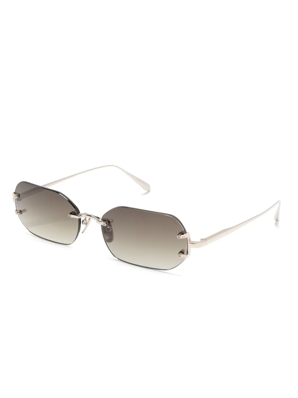 zilverkleurig titanium acetaat randloze glazen glazen met UV-bescherming en kleurverloop rechte pootjes gebogen uiteinden