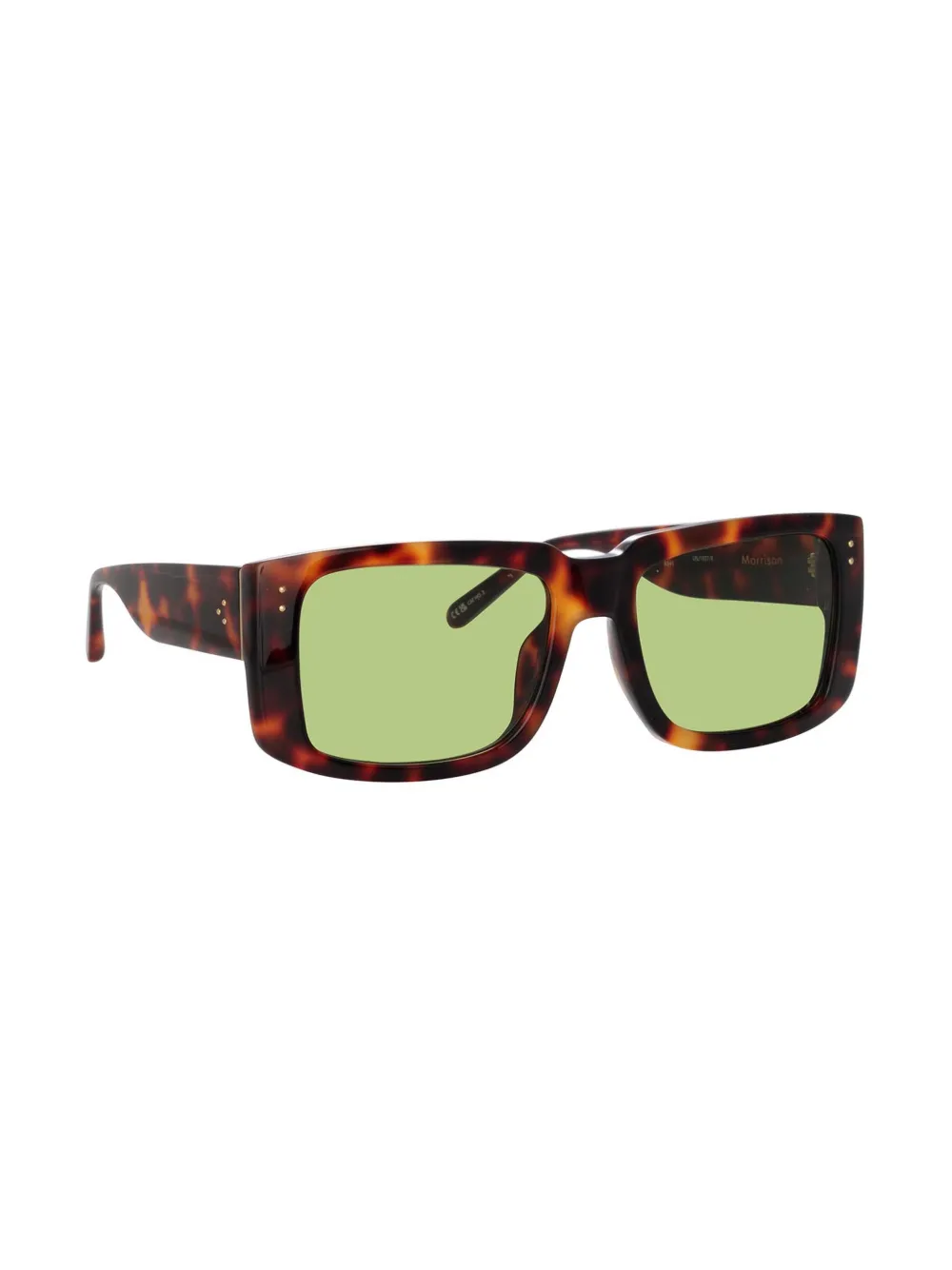 bruin acetaat vierkant montuur groen getinte glazen schildpad montuur klinknageldetails oversized pootjes gebogen uiteinden Deze bril wordt verkocht met een beschermhoes.
