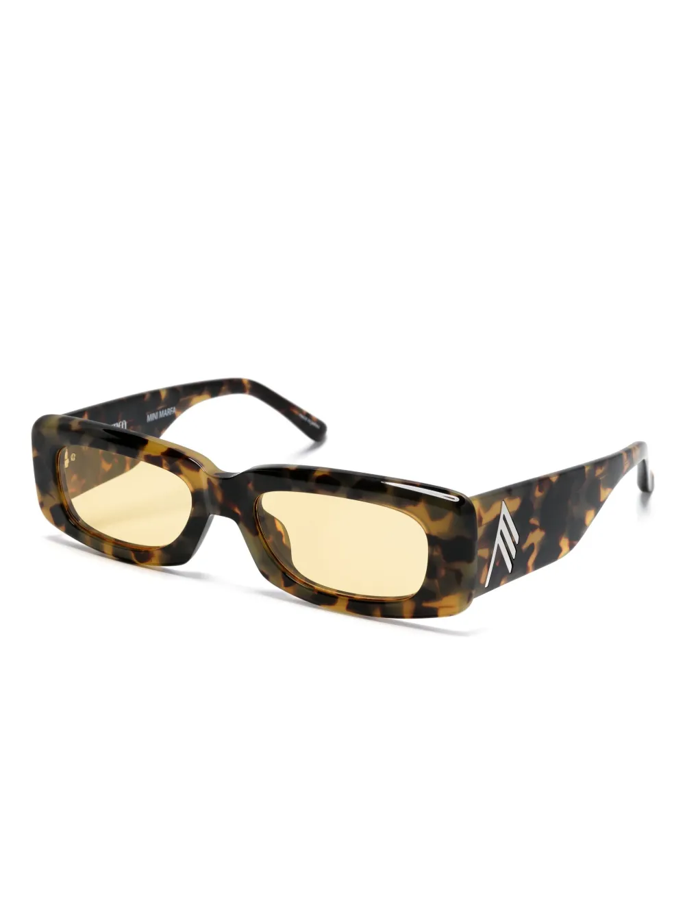 animalier bruin acetaat schildpad montuur rechthoekig montuur glazen met UV-bescherming logoplakkaat op het pootje rechte pootjes gebogen uiteinden
