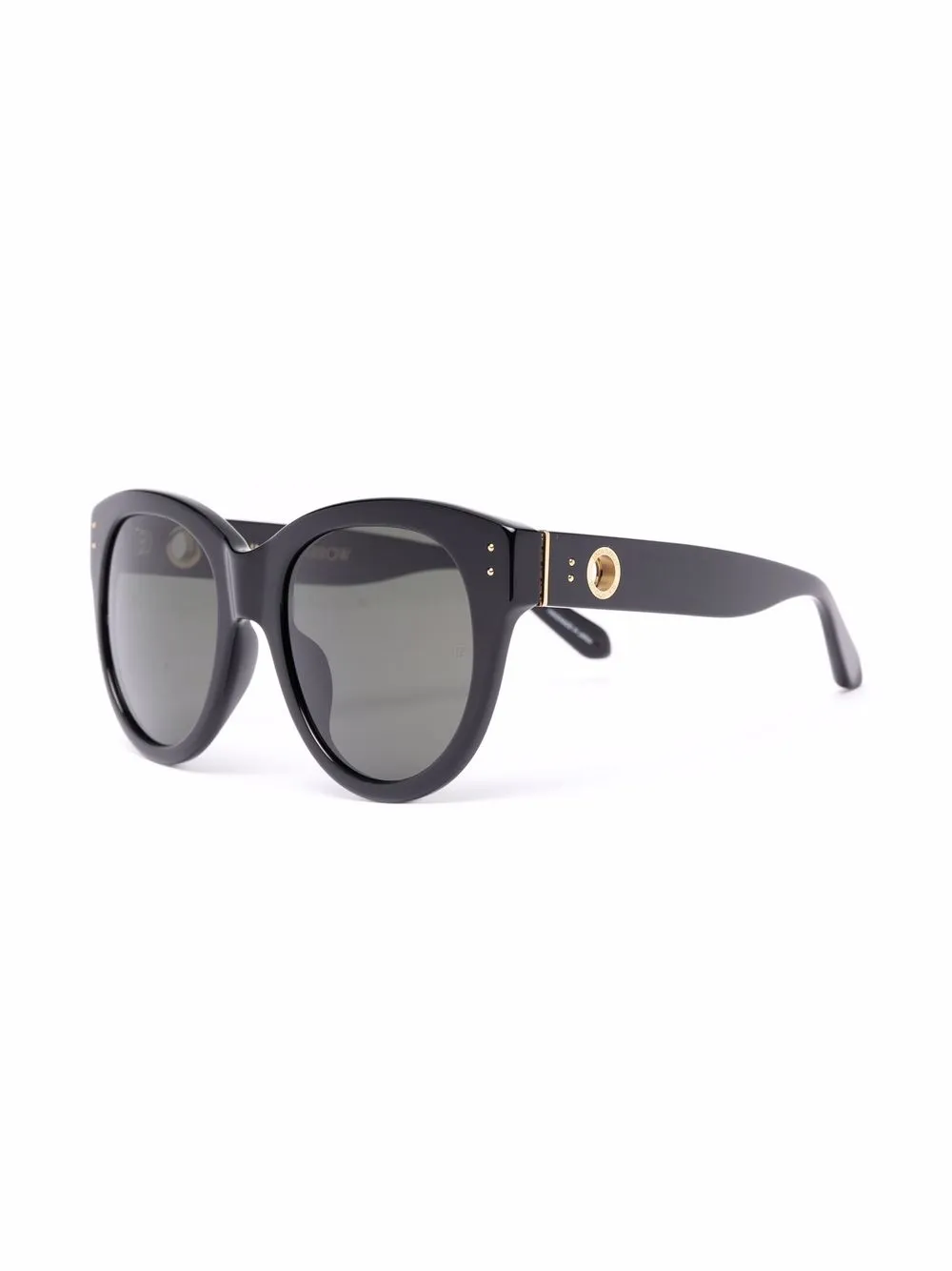 Rond montuur, gekleurde glazen, goudkleurig materiaal, rechte pootjes en gebogen uiteinde. Deze bril wordt verkocht met een beschermhoes..