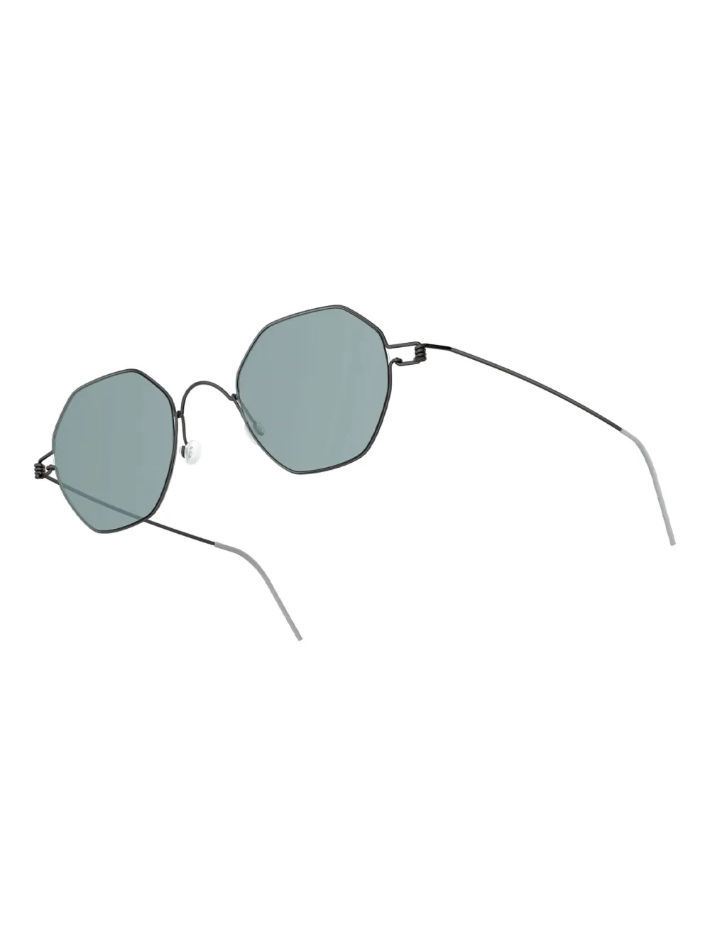 zwart geometrisch montuur gepolijste afwerking grijze glazen dunne pootjes veerscharnieren Deze bril wordt verkocht met een beschermhoes.