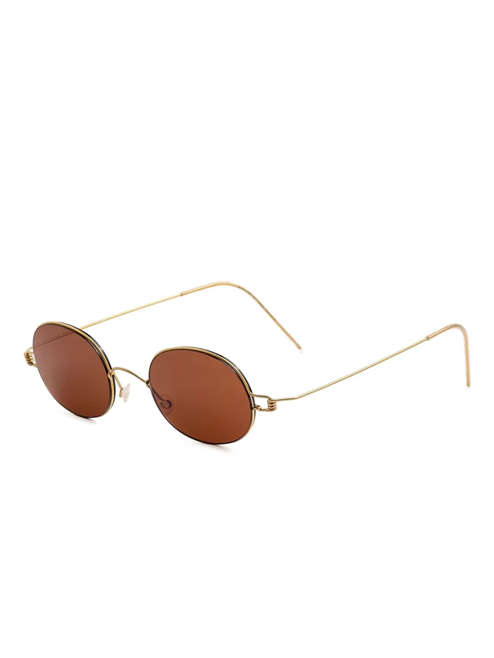 goudkleurig neuskussentjes bruine glazen rond montuur gebogen uiteinden Deze bril wordt verkocht met een beschermhoes.