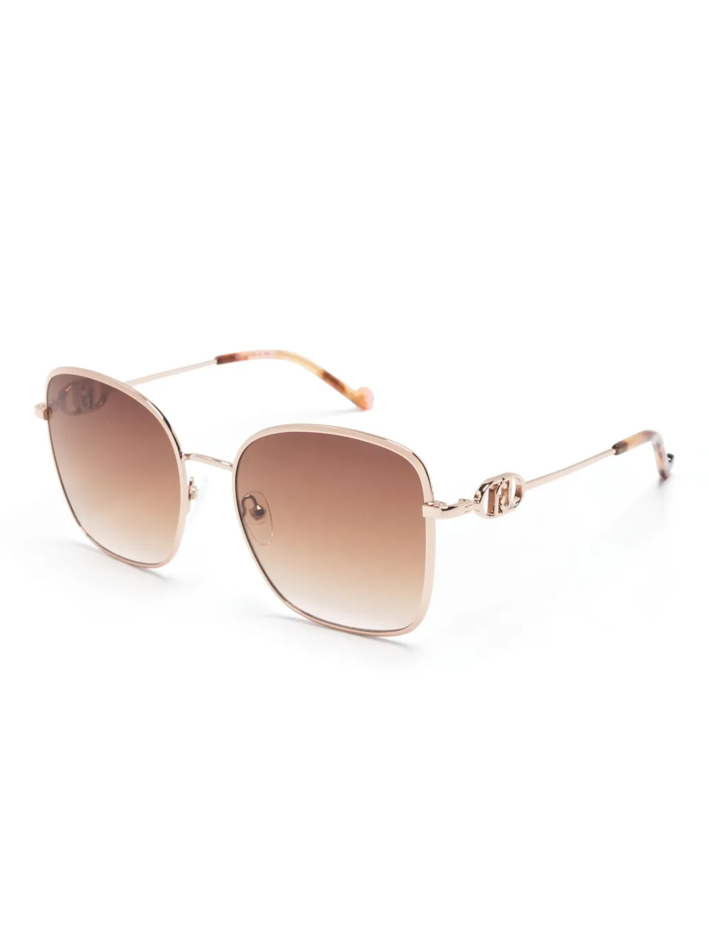 goudkleurig metaal vierkant montuur glazen met kleurverloop neuskussentjes logoplakkaat op de mouw rechte pootjes gebogen uiteinde Deze bril wordt verkocht met een beschermhoes.