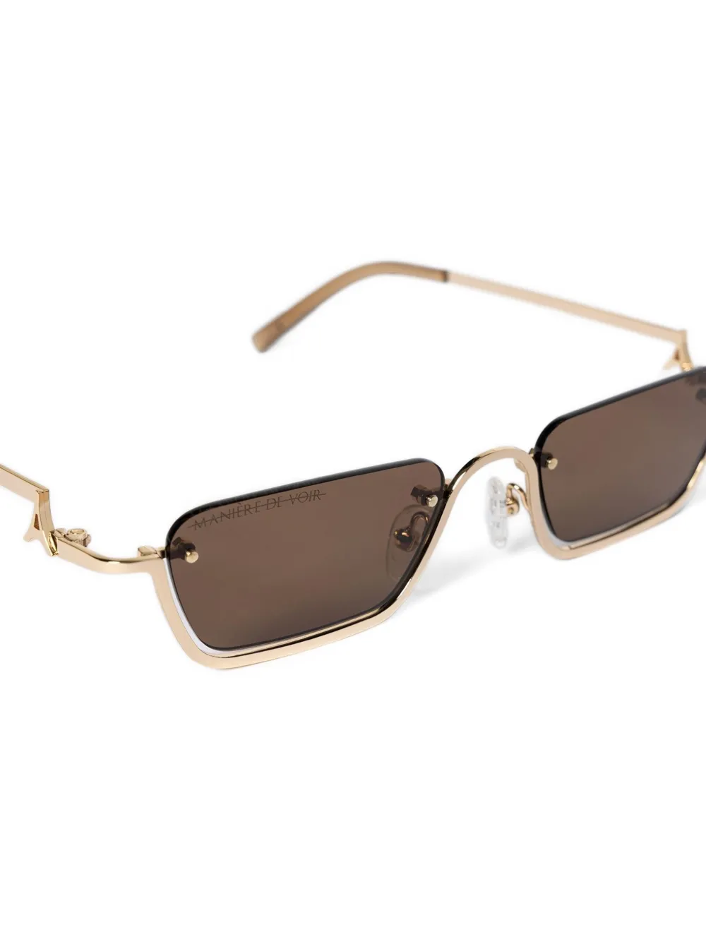 goudkleurig rechthoekig montuur bruine glazen UV-bescherming metalen frame kenmerkend logodetail Deze bril wordt verkocht met een beschermhoes.