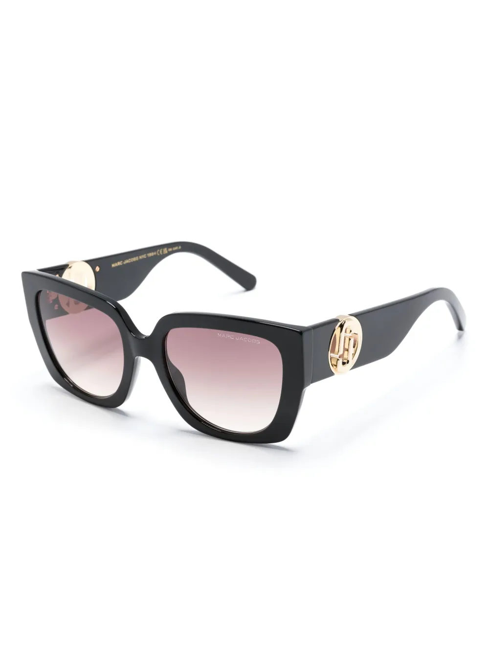 zwart acetaat goudkleurige hardware vierkant montuur bruine glazen lens sticker kenmerkend J Marc plakkaat op de armen rechte pootjes gebogen uiteinde Deze bril wordt verkocht met een beschermhoes.