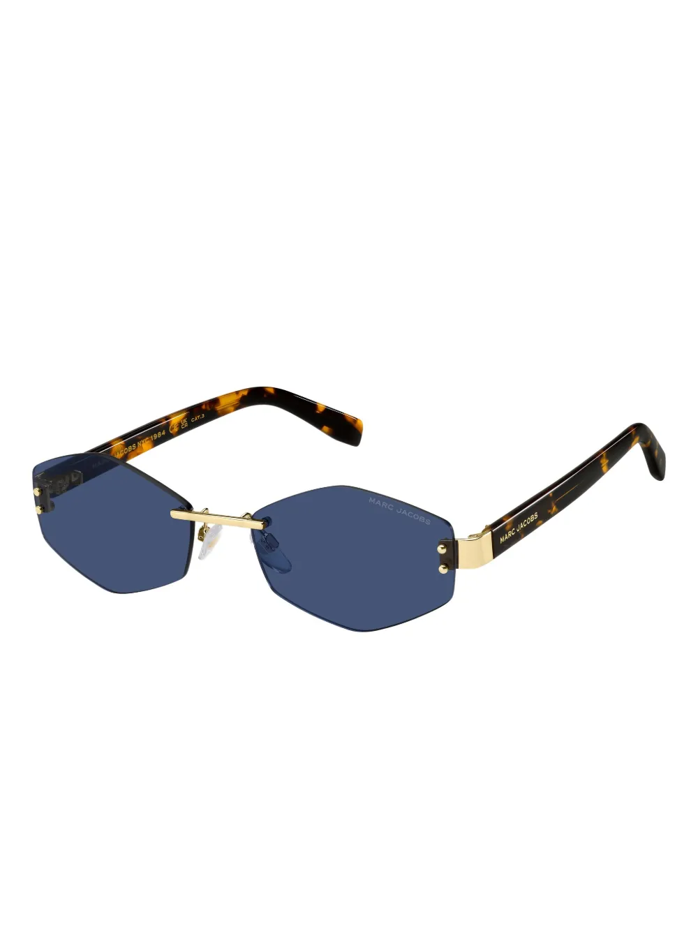 bruin geometrisch montuur goudkleurige metalen pootjes schildpadschild-design randloze glazen Deze bril wordt verkocht met een beschermhoes.