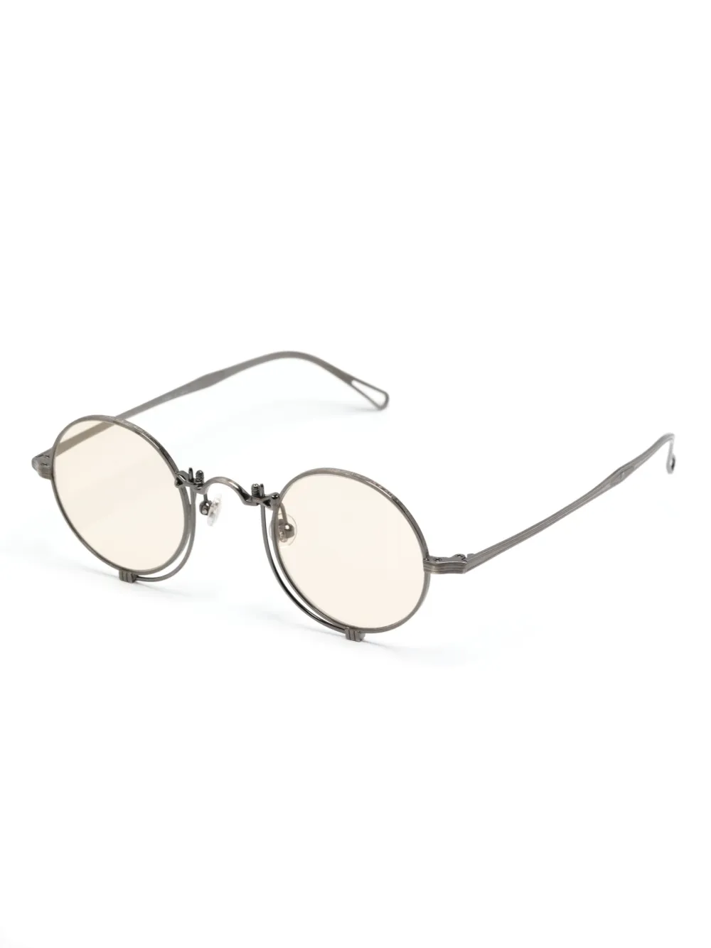 zilverkleurig metaal neuskussentjes rond montuur rechte pootjes gebogen uiteinde Deze bril wordt verkocht met een beschermhoes.