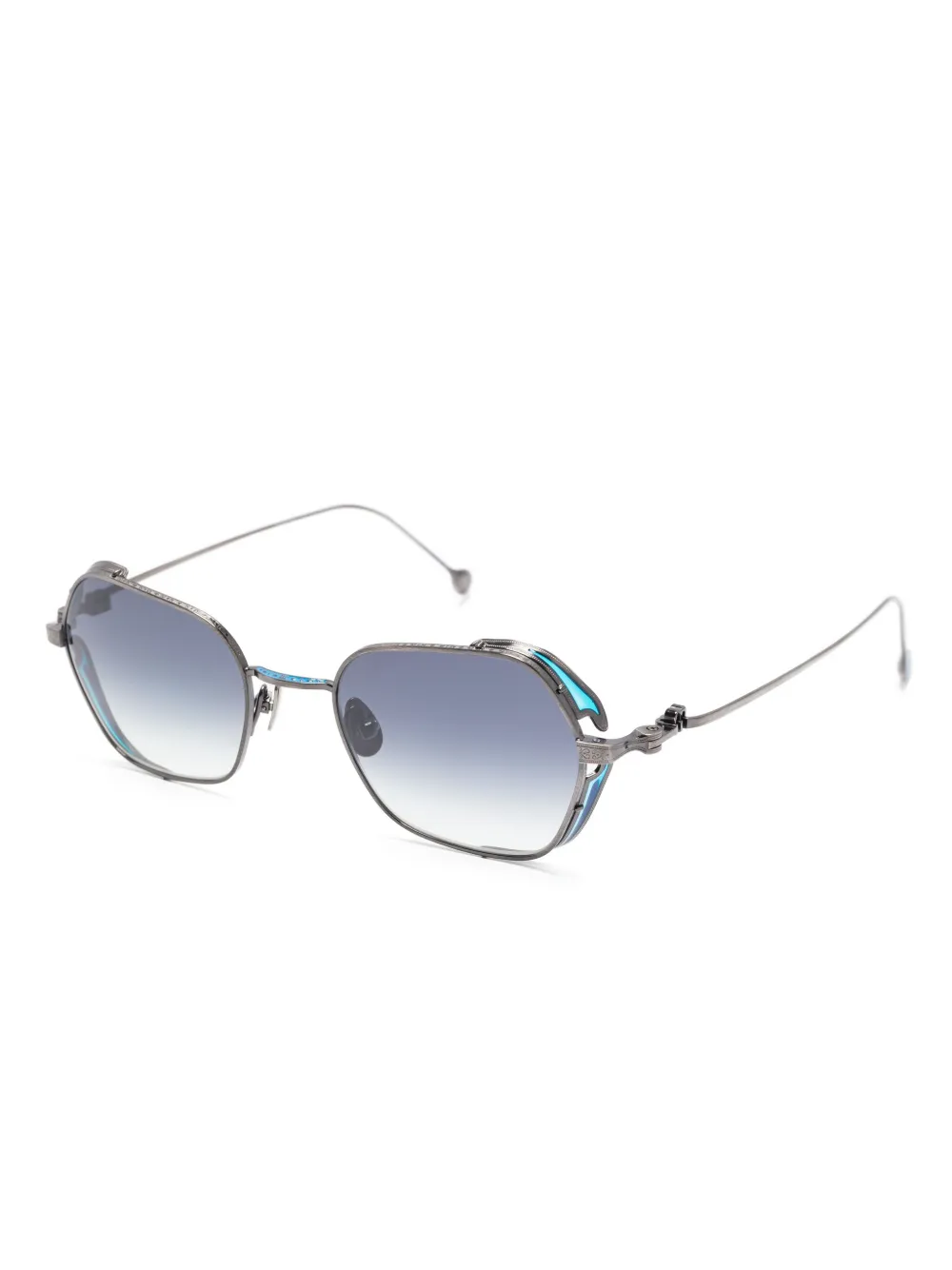 zilverkleurig geometrisch montuur glazen met kleurverloop neuskussentjes Deze bril wordt verkocht met een beschermhoes.