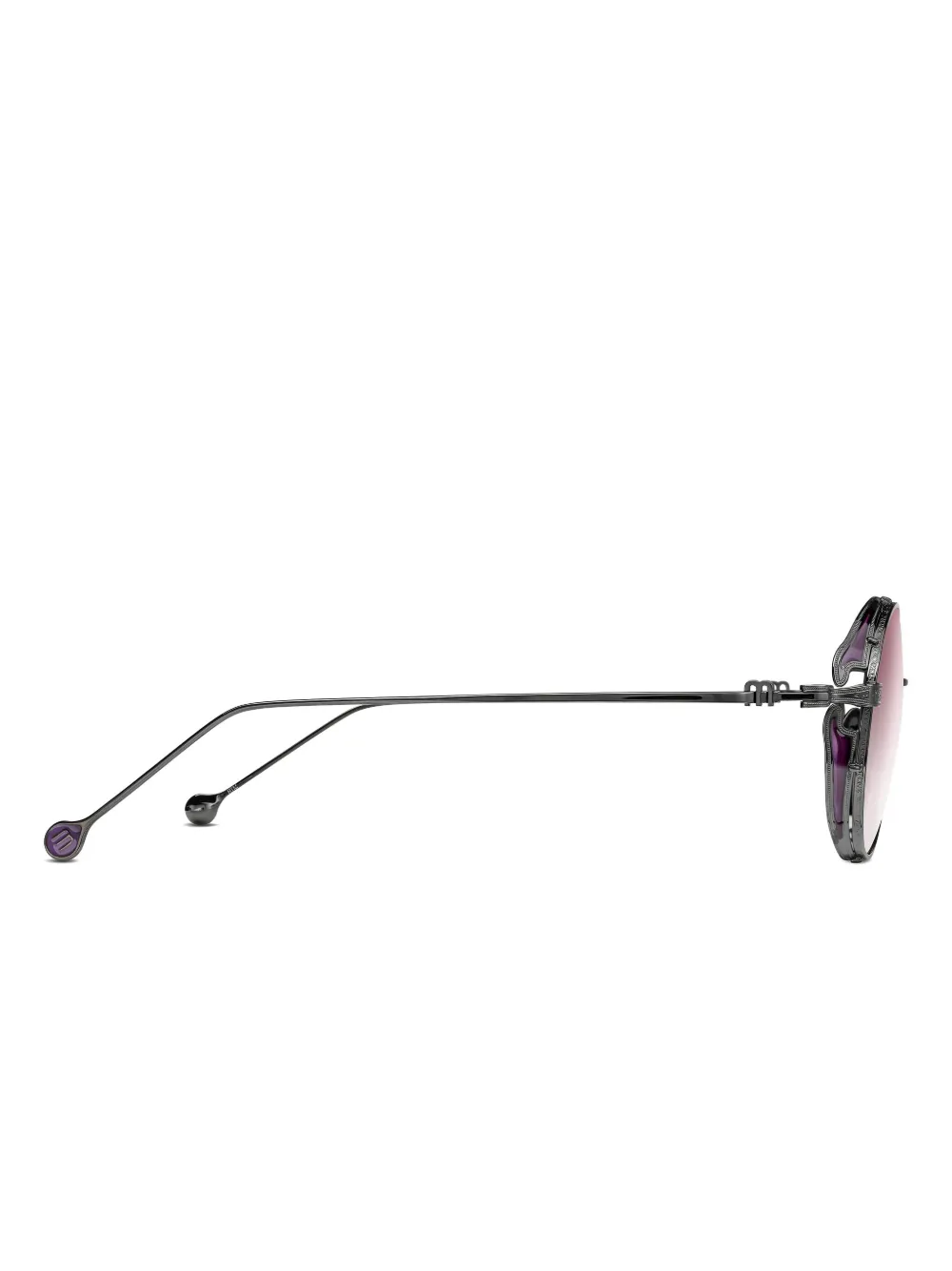 zwart rond montuur roze glazen met kleurverloop decoratieve metalen details Deze bril wordt verkocht met een beschermhoes.