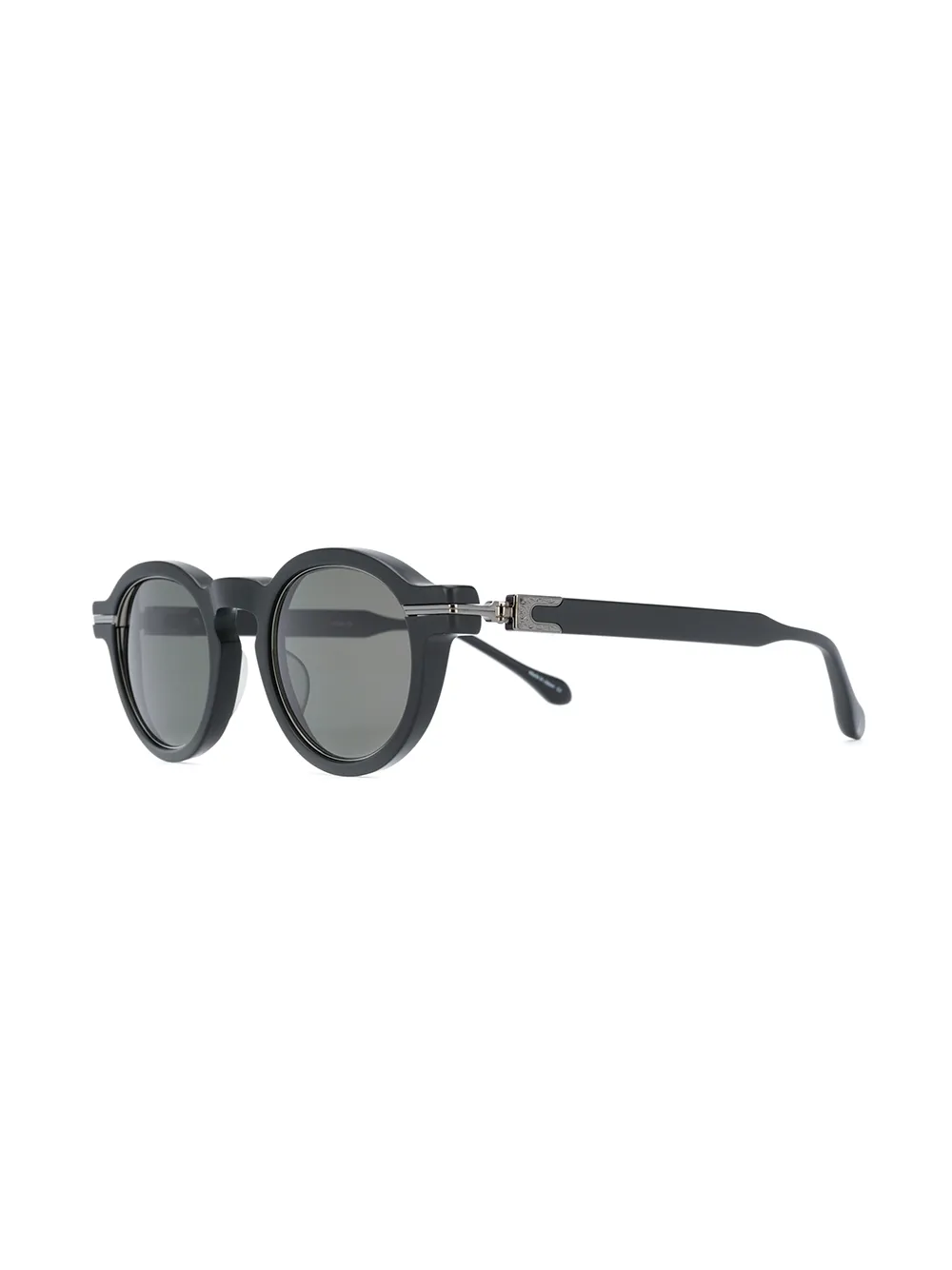 Zonnebril met rond montuur van Matsuda uitgevoerd in acetaat voorzien van rond montuur, gekleurde glazen en gestrekte armen met gebogen uiteinden.