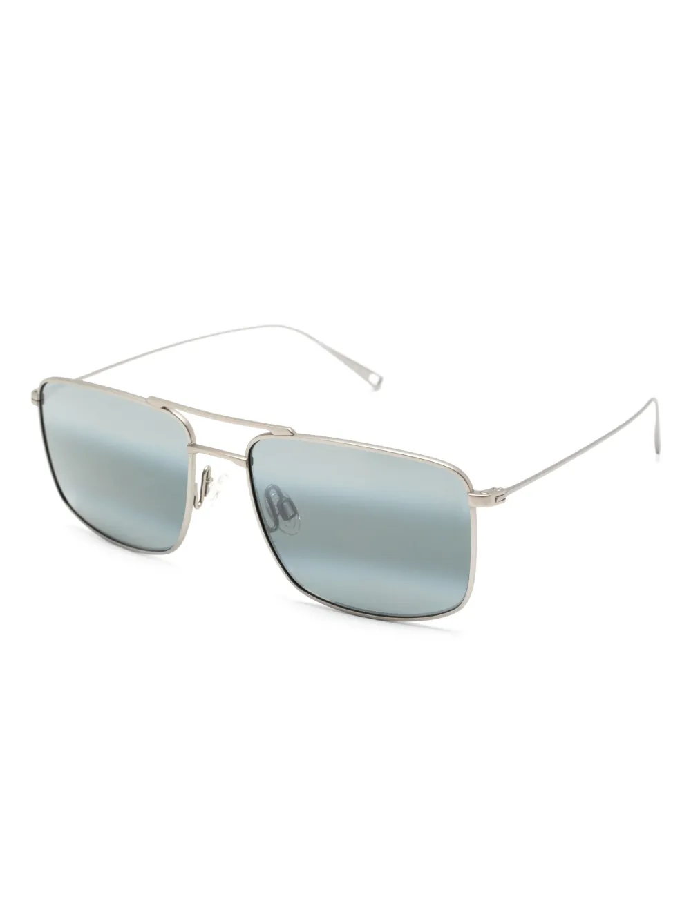 Grijs, titanium, zilverkleurig materiaal, piloten montuur, gespiegelde glazen, polariserende glazen, neuskussentjes, rechte pootjes en rechte afwerking. Deze bril wordt verkocht met een beschermhoes..