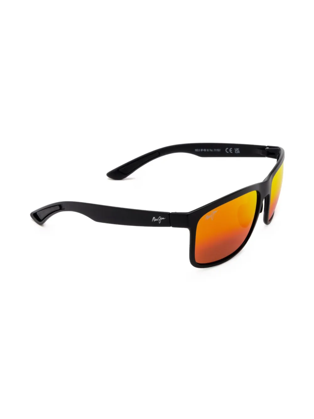 zwart acetaat vierkant montuur gespiegelde glazen glazen met UV-bescherming neuskussentjes logoprint op het pootje rechte pootjes gebogen uiteinden Deze bril wordt verkocht met een beschermhoes.