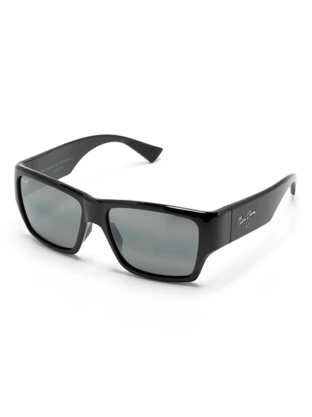 zwart glanzende afwerking lens sticker pootje met gegraveerd logo vierkante vorm gekleurde glazen glazen met UV-bescherming neuskussentjes oversized pootjes gebogen uiteinden Deze bril wordt verkocht met een beschermhoes.