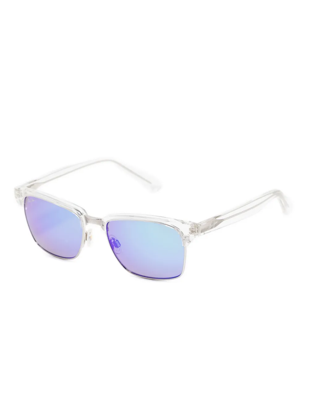wit acetaat doorzichtig design vierkant montuur polariserende glazen design met half montuur neuskussentjes gewelfde pootjes gebogen uiteinden Deze bril wordt verkocht met een beschermhoes.