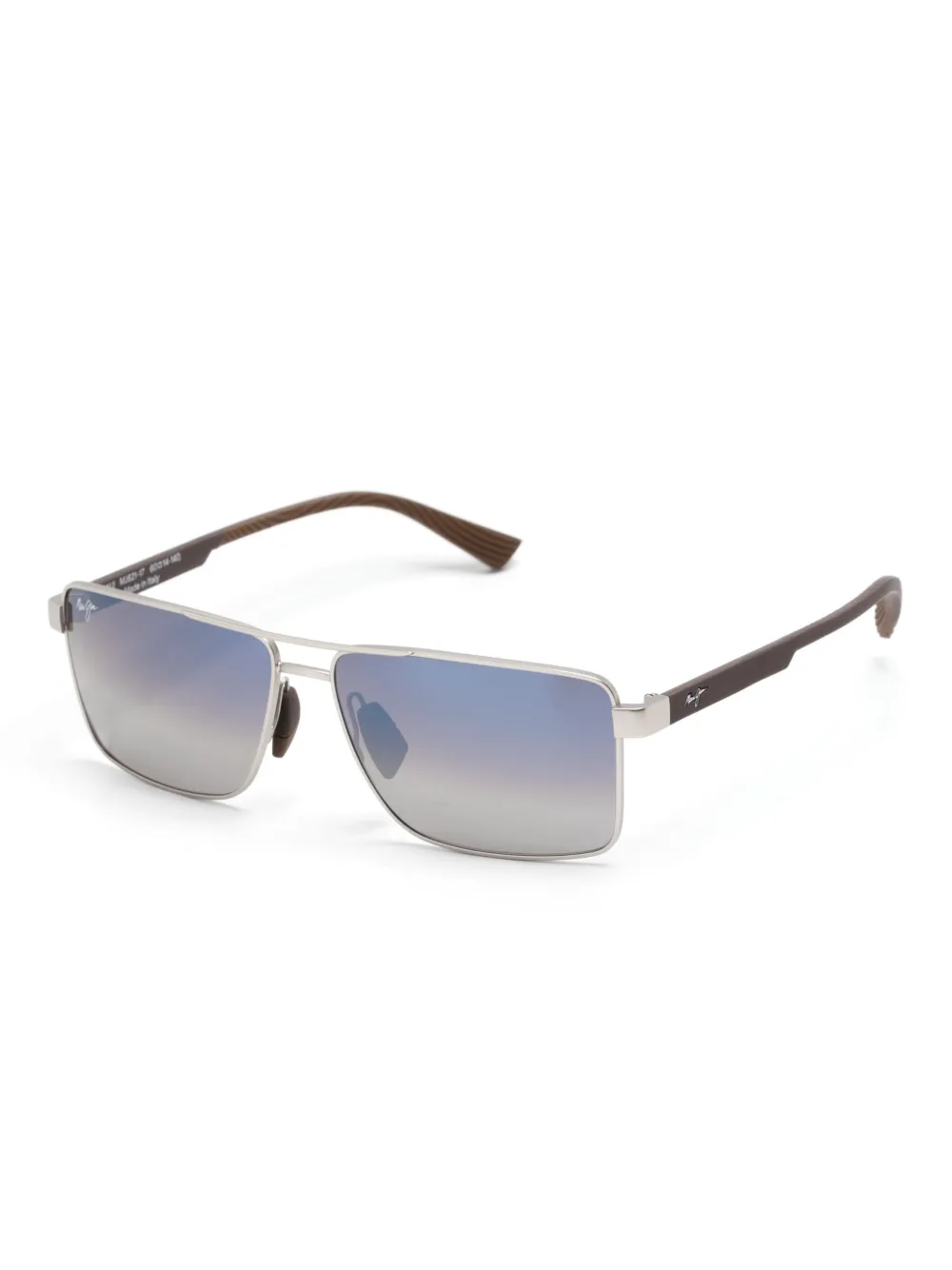 zilverkleurig metaal rechthoekig montuur glazen met UV-bescherming dubbele neusbrug neuskussentjes logo lens sticker pootje met gegraveerd logo rechte poten met gebogen uiteinden Deze bril wordt verkocht met een beschermhoes.