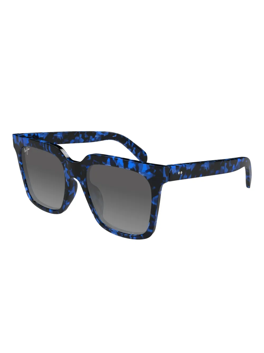 blauw schildpadschild-design vierkant montuur grijze glazen logo detail Deze bril wordt verkocht met een beschermhoes.